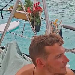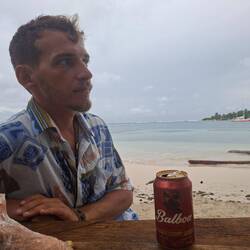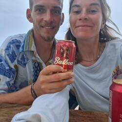 En fin de journée, nous allons sur l’île d’à côté pour nous aérer l’esprit. Au loin, Becky et Jim, nos voisins du cata, nous appellent : « Malo, Malo !! ». Ils nous rejoignent sur l’île. Jim nous explique qu’à force de voyager et de voir tous ces déchets, il veut agir. Il connaît quelqu’un qui travaille pour l’Europe et qui, selon lui, pourrait financer des posters de sensibilisation. Quand Olivier lui a dit que Malo était biologiste marin, il s’est dit que cela pourrait légitimer le projet. On voit bien le personnage, un peu fou mais très enthousiaste 😅 On échange nos contacts ; on verra ce qu’il sera possible de faire — ou pas. On comprend très bien sa frustration et son envie d’agir ; peut-être pourrons-nous intervenir dans des écoles. Mais comme nous sommes en mouvement permanent, il est difficile de monter des projets solides.