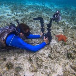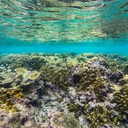 On nage entre herbiers et récifs. De l’autre côté de l’île, le courant est assez fort. Nous arrivons de nouveau dans la zone de mouillage, un peu plus abritée, où l’on croise encore raies et requins. On en profite pour capturer ces beaux moments.