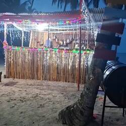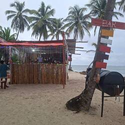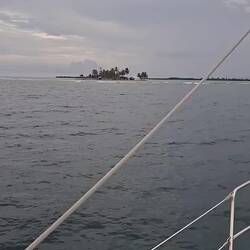 En fin de journée, on prend l’annexe pour découvrir l’île d’à côté. On en fait le tour en deux minutes à pied : de petits îlots, avec des palmiers, un petit bar et deux ou trois tentes abritant des familles. On prend une petite bière pour conclure la journée, toujours assez grise.