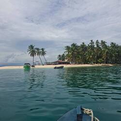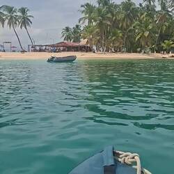 Nous rentrons au bateau avec l’annexe, dans une eau des plus turquoises, malgré les nombreux déchets plastiques que nous croisons. L’eau reste translucide. En arrière-plan, nous distinguons les reliefs du Panama. Nous levons l’ancre sous une chaleur écrasante pour partir vers l’île de Chichime.