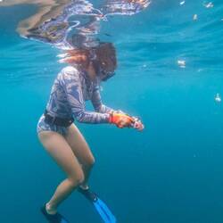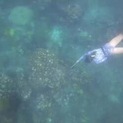 Alors que je frotte le linge et que Malo répare le paddle, qui semble se dégonfler, Wanda et Joanne nous font signe : elles partent faire le tour de l’île à la nage. Allez, c’est parti ! J’attrape la GoPro, Malo son appareil, les masques, palmes et tuba, et on saute à l’eau.