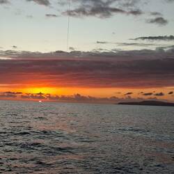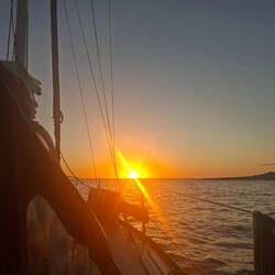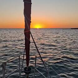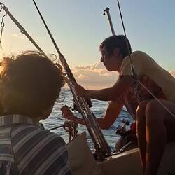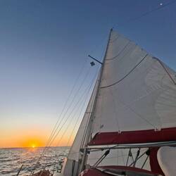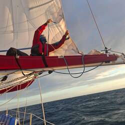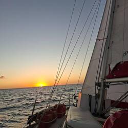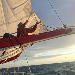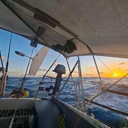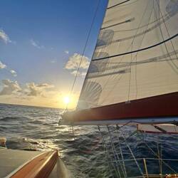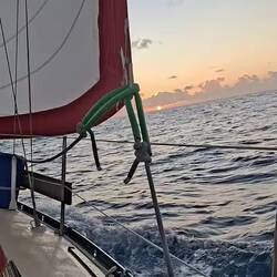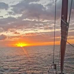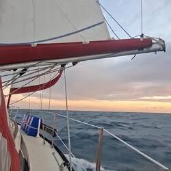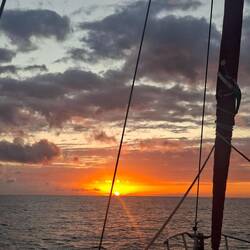 On affine les réglages des voiles pour essayer d’optimiser notre allure. Et là, on est ravis : on est au-dessus de 6 nœuds de moyenne, ce qui est assez rare. Sur de longues distances, ça fait une vraie différence. On savoure les belles couleurs du soir en écoutant de la musique. C’est parti pour notre quatrième nuit !Read more