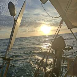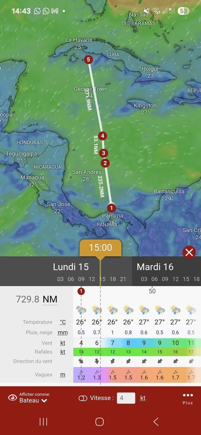 Pendant que Malo se repose, j’assiste à un beau lever de soleil, agrémenté de nuages denses qui font danser les lumières. On continue notre route sans s’arrêter aux Caïmans : nous avons un vent constant. On profite d’être à proximité de la côte pour capter internet et faire un point météo 🌎Read more