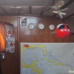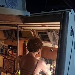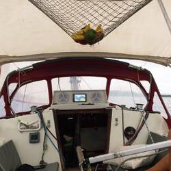 De retour à bord, on organise un peu les espaces pour trouver de la place pour les affaires et les équipières.