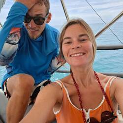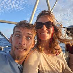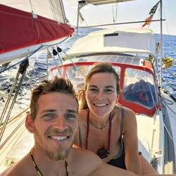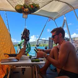 Tout un coup on entends notre VHF grésiller, le signal n'est pas clair mais ça y est nous arrivons à écouter les Blue Moana, c'est Wanda !! Trop chouette, le suspense est à son comble : sommes ils déjà arrivé ? Et oui !! Ils sont arrivés de peu à 8h ce matin. Ils nous attendent avec impatience 🤩