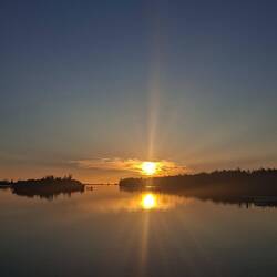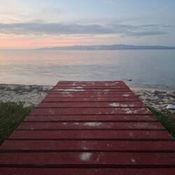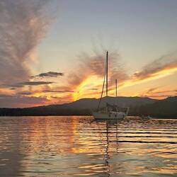Le coucher du soleil est superbe, on est très abrités ici. On décide de passer la nuit à quai et nous irons au mouillage demain.