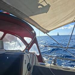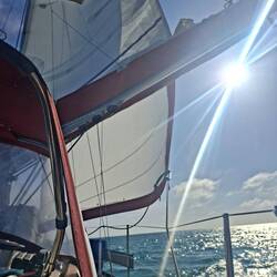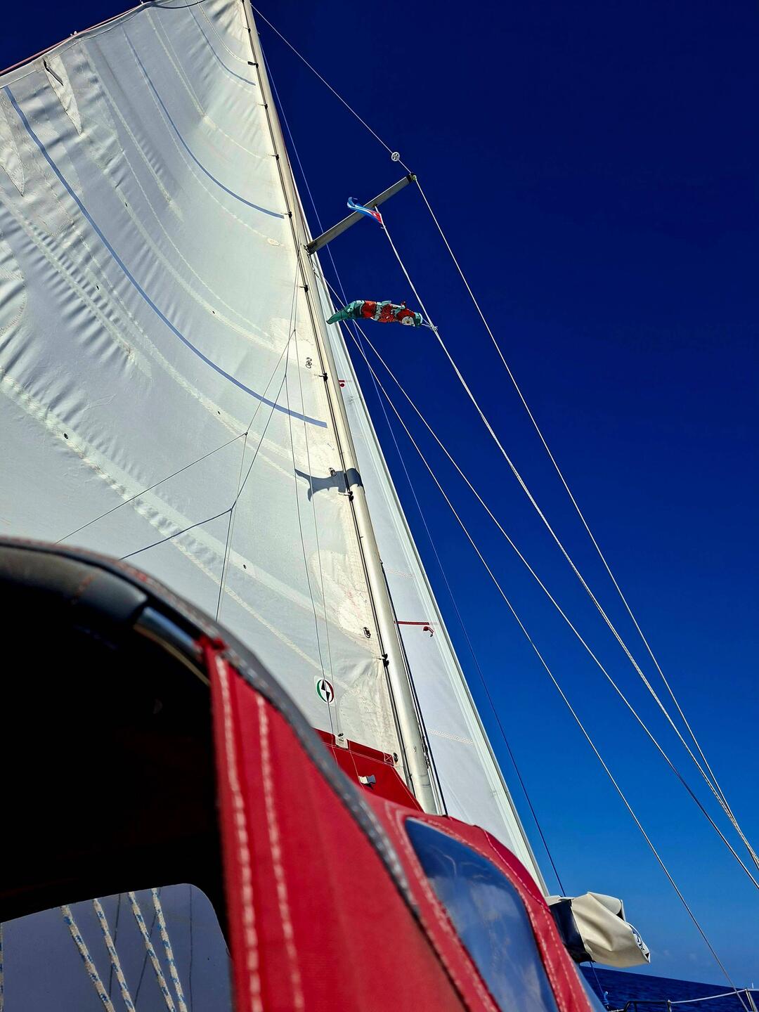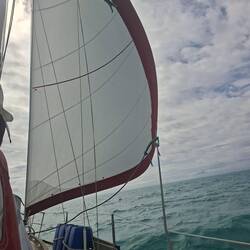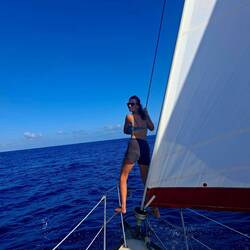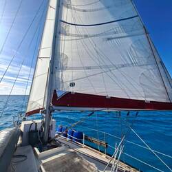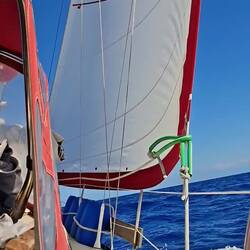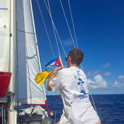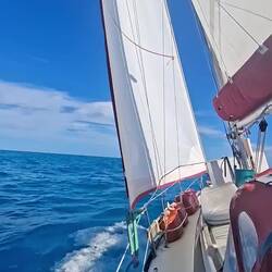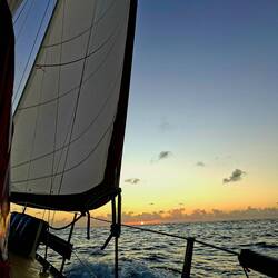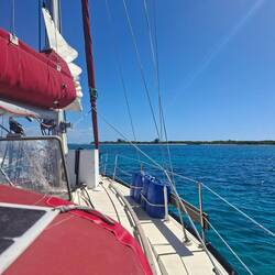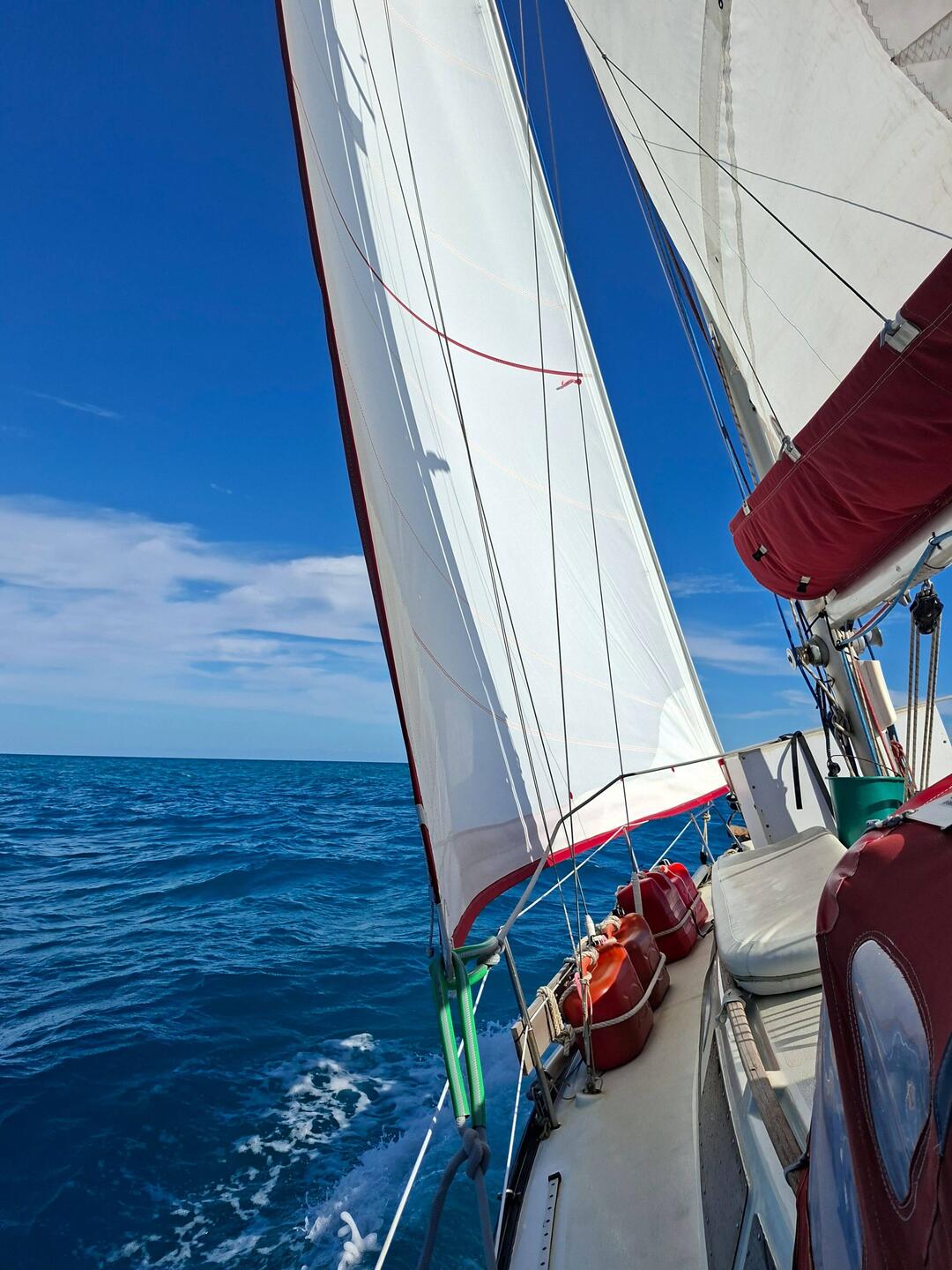 Ça y est nous sommes avec 2 ris dans la grande voile et le foc, on avance à 6noeuds, ça file et ça secoue ! ⛵️ Si tout se passe bien il nous reste un peu plus d'une journée de navigation pour arriver à Cayo largo, notre port d'entrée à Cuba. Cayo largo est une île situé au sud de Cuba.