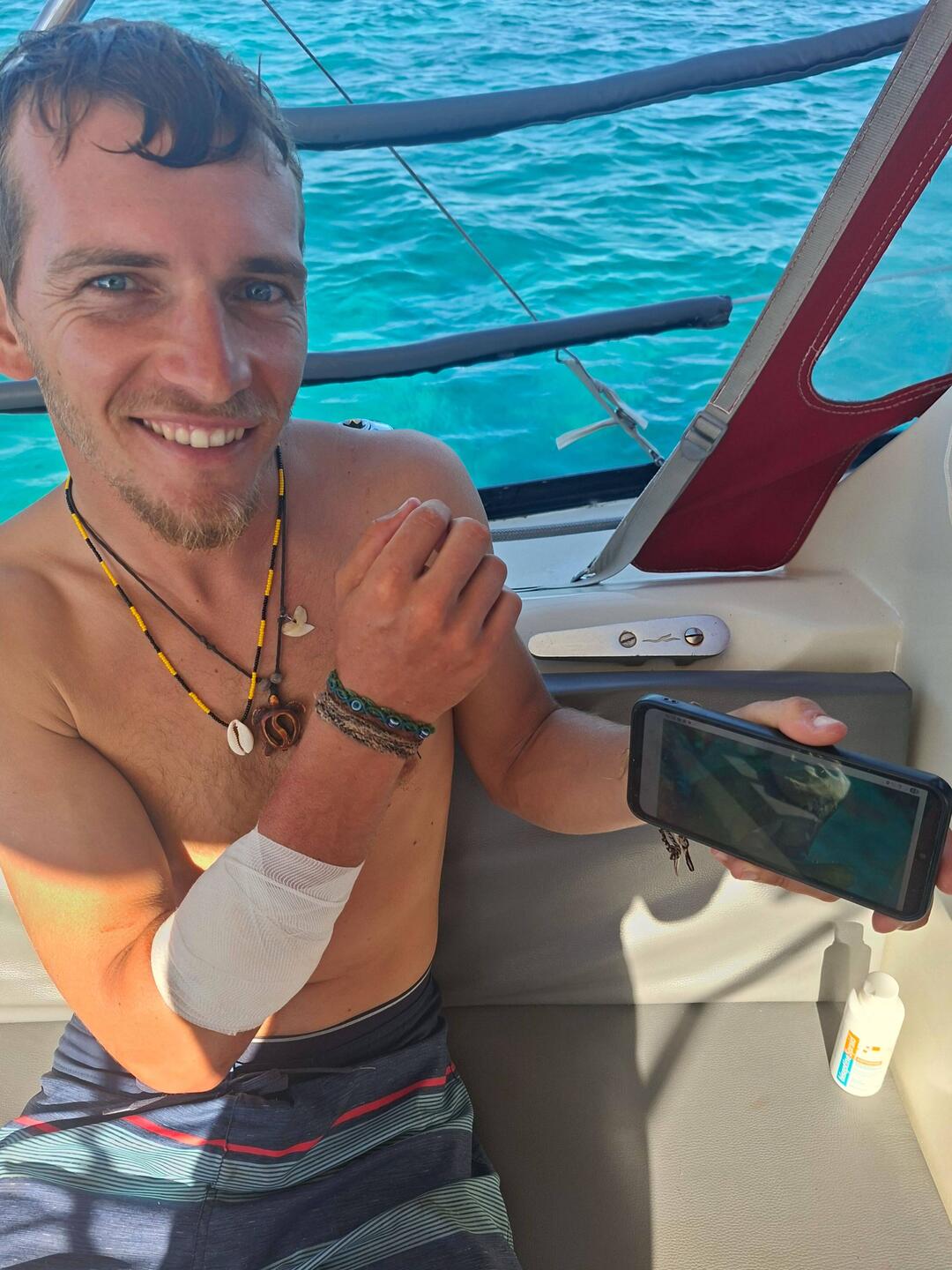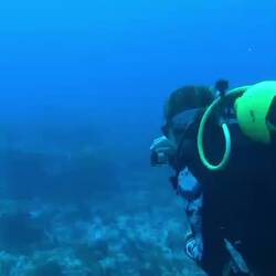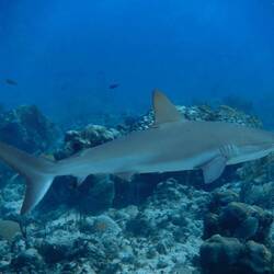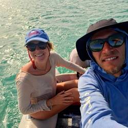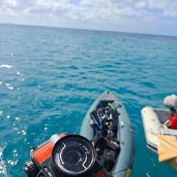 Le lendemain, un peu fatigués de la soirée de la veille mais nous sommes bien motivés pour une plongée de Noël avec Malo. On s'équipe et on saute dans l'annexe, le vent est un peu tombé. Heureusement car nous avons un peu de route sur notre petit canot. Nous trainons le kayak ou nous avons mis tout le materiel pour éviter de trop prendre l'eau dans l'annexe. Nous arrivons à passer rle recif, nous mettons l’ancre, nous nous équipons et nous nous immergeons. C'est parti pour une heure de spectacle, c'est magnifique ! L'eau est transparente et de nombreux requins caraibes qui nagent autour de nous, nous tournons la tête et 4 raies léopards dansent avec le courant. C'est magique.