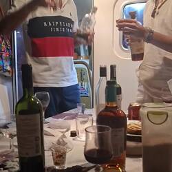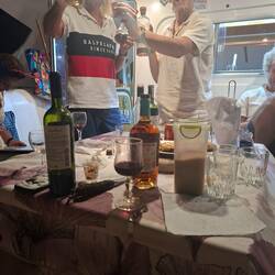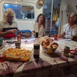 De retour à bord, on profite d'une douche des plus méritée puis nous allons boire un verre chez nos voisins.