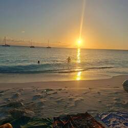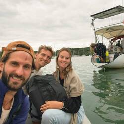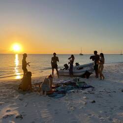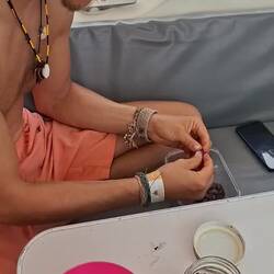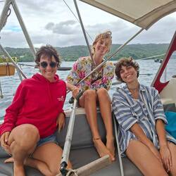 Nous nous retrouvons donc tous sur la plage avec les couleurs de fin de journée. On fait un beach-volley avant de passer au goûter et au révélation de nos cadeaux ! Malo a le droit à un beau bracelet tissé à la main avec le nom de Noam réalisé par Yasmine. Wanda m'offre un germoir et des graines pour me lancer dans les graines germées ! Nous sommes gâtés. On passe une belle fin de journée avec un coucher de soleil magnifique sur les trois bateaux.Read more