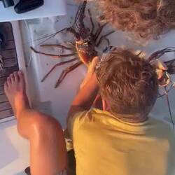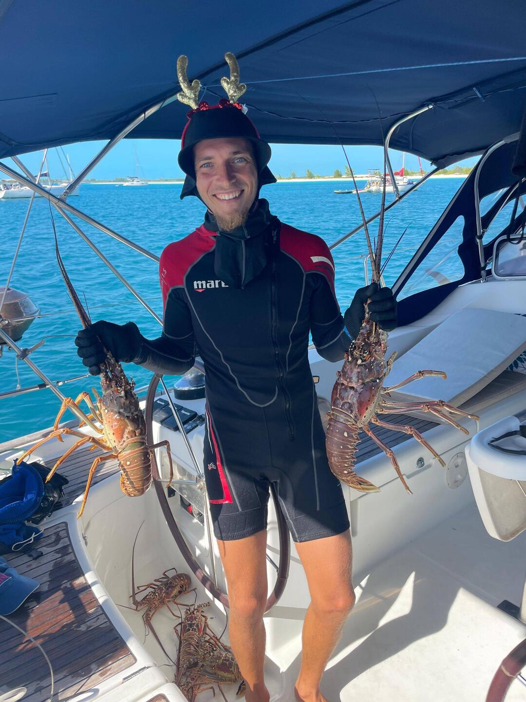 Malo continue sa journée sous l’eau en partant pour une petite chasse en début d’après-midi ; il nous ramène une jolie langouste pour ce soir. Nous ne sommes pas près de mourir de faim ici !!