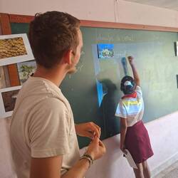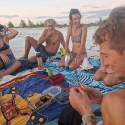 Nous rentrons avec des étoiles dans les yeux à bord, nous ne tardons pas à retrouver nos amis sur la plage pour le goûter de Noël. Noemie et Jules ont réussi à trouver des fruits et légumes, c'était une vraie mission car la personne leur a vendu cela sous le manteau. Il avait très peur car il n'avait pas le droit de leur vendre. Ils avaient l'impression d'acheter de la drogue ! Tout semble contrôlé par le gouvernement cubain et même vendre des fruits et légumes semble être quelque chose de difficile.