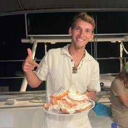 De retour à bord, nous preparons quelques mets de Noël. Malo va chez les Blue Moana pour tuer et cuire les langoustes, une véritable mission au vu de leur taille !! Un bon couteau entre les yeux puis à l'eau bouillante. Nous montons dans nos annexe avec les vivres pour nous rendre chez Lionel et Yamilé, nous passons une très belle soirée !