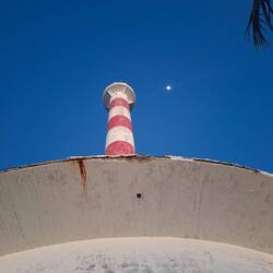 Nous arrivons à Cayo Guano, où un imposant phare rouge et blanc nous domine depuis son roc. Notre ancre a un peu de mal à prendre, le sol semble être très dur sous le sable. On ajoute pas mal de chaîne pour limiter le risque de déraper dans la nuit. Le coucher du soleil commence doucement, les couleurs sont sublimes. On saute dans l’annexe pour nous rendre à terre, on aimerait voir le phare.
