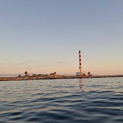 Un des deux gardiens du phare nous accueille et nous aide à nous amarrer. On croise Noémie et Jules descendant du phare : « C’est magnifique ! ». Un des deux gardiens nous fait signe : « Venez, vous pouvez monter aussi ! ». C’est parti, nous nous empressons de gravir les plus de 200 marches qui nous conduisent au sommet des 53 mètres de haut, pile à l’heure pour les dernières lueurs du soir. Nous sommes accompagnés par l’un des gardiens.