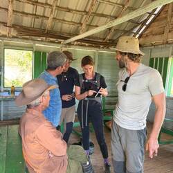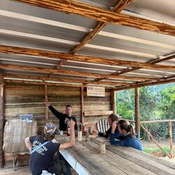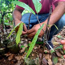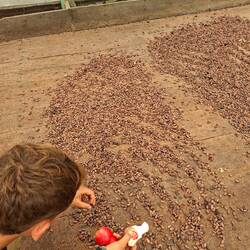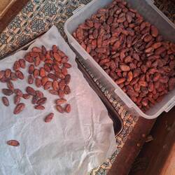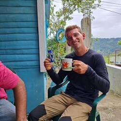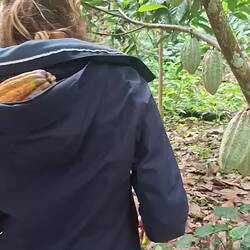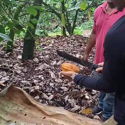 Nous prenons donc la route de la finca, en nous enfonçant dans la montagne. Autour de nous, une végétation luxuriante et du cacao à perte de vue. Après deux bonnes heures de route, nous rencontrons Joël, qui nous accueille avec un immense sourire. On passe un moment formidable. Il nous montre toutes les étapes : la culture, les greffes, la fermentation, le séchage… On sent qu’il aime profondément son métier.