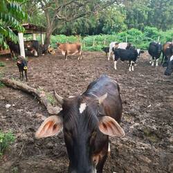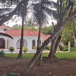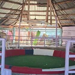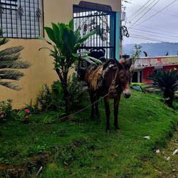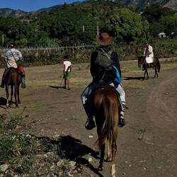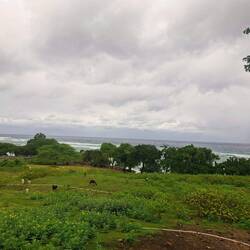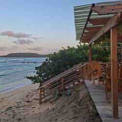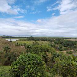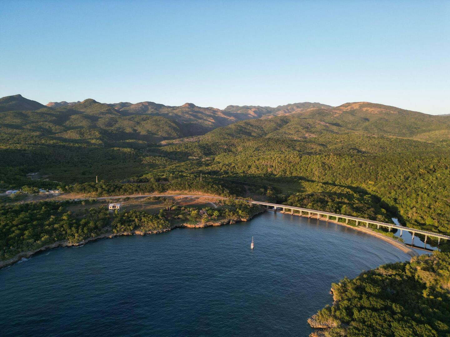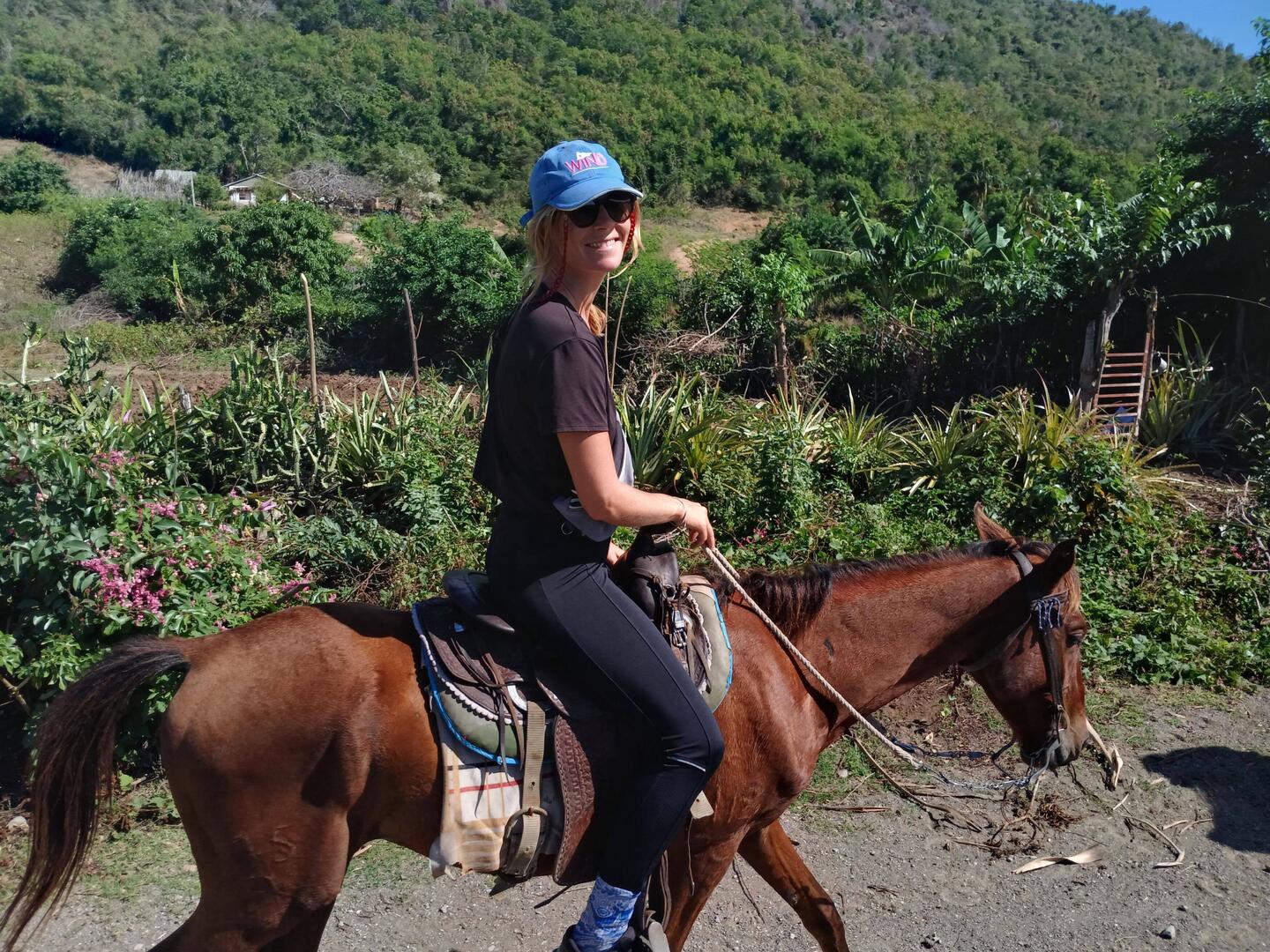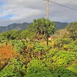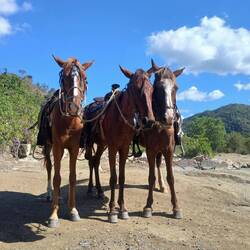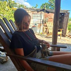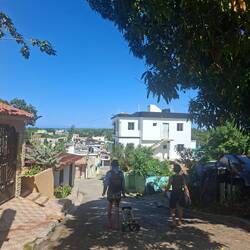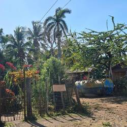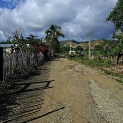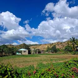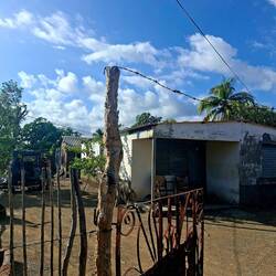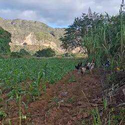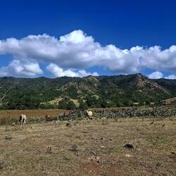 Nous continuons notre route vers la sortie du village, où nous avions repéré un refuge pour animaux. En chemin, nous tombons sur une petite cahute où un monsieur propose des empanadas et des avocats délicieux. On s’installe sur des chaises en plastique au bord de la route pour profiter de notre encas avant de reprendre la marche. Nous arrivons ensuite sur un chemin de terre. Les paysages sont magnifiques : de nombreuses vaches passent tranquillement, avec les montagnes en arrière-plan. C’est dans cette région que se trouve le plus haut sommet des Caraïbes, le Pico Duarte. Cette cordillère offre à la baie de Luperón une protection exceptionnelle contre les tempêtes ; ici, on l’appelle la « baie bénie » pour cette raison. C’est aussi pour cela qu’il y a tant de bateaux. Nous passons devant une arène de combats de coqs — malheureusement, une tradition encore très ancrée dans toute la Caraïbe. Lorsque nous arrivons au refuge, celui-ci est fermé. Nous sommes vendredi après-midi ; peut-être n’est-il pas ouvert. Nous en profitons pour passer quelques coups de fil à nos proches.