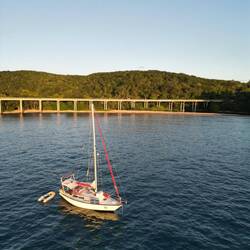 À 7 h, nous sommes sur le pont ! Nous saluons nos voisins de bouée : Claude et Michel. Un couple à la retraite, 70 ans bien passés, qui voyage à bord de leur Ovni, un beau monocoque en aluminium. Ils sont superbes, avec le sourire et l’énergie de naviguer ! Ils nous racontent leurs aventures et nous sommes presque tristes de partir ; ça nous aurait fait plaisir de les rencontrer un peu plus longtemps. Mais c’est ça aussi le voyage : les rencontres rapides et les au revoir…