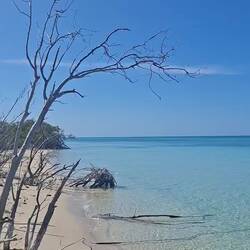 Nous devons ensuite filer à Linton Bay pour acheter quelques fruits et légumes. Nous empruntons pour la dernière fois le chemin parmi les mangroves en annexe : on ne s’en lasse pas.