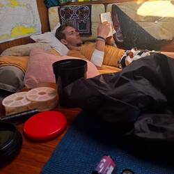 Nous nous organisons par équipes de deux pour les quarts de nuit : il y a toujours Malo ou moi avec l’une des filles. Une veille, un en quart, deux au lit — et ça tourne toutes les deux heures. C’est parti !Read more