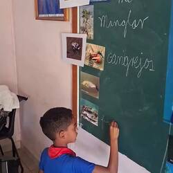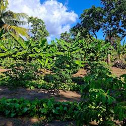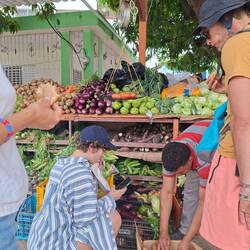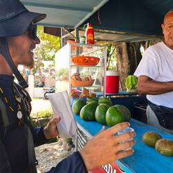 Nous nous asseyons pour discuter. Peu à peu, il comprend que nous voyageons en voilier, et non avec les grands paquebots de croisière, comme beaucoup de touristes ici. Il n’en revient pas ! On rigole, on échange, puis il nous emmène faire le tour de la petite communauté : quelques maisons regroupées. Il nous présente aux voisins, à Lourdes, qui nous invite à prendre le café. On nous offre corossol, papaye, oranges, cacao… Nous sommes vraiment gâtés. Nous repartons le cœur léger, invités à revenir quand nous voulons.