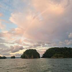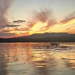 Nous jetons l’ancre à la tombée du jour. Malo et Agatha sautent dans l’annexe pour installer une ancre arrière afin d’éviter un roulis trop fort. Ça fonctionne à merveille ! Le ciel se couvre de couleurs rouges, roses et violettes. Et nous ne tardons pas à rejoindre Morphée. Demain, on se lève aux aurores : nous souhaitons profiter du lever de soleil pour aller observer les baleines.