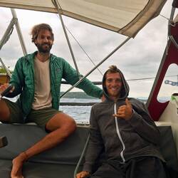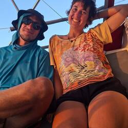 Le soir, nous sommes invités à bord d’Odine, le bateau qui a amené Agatha jusqu’ici en bateau-stop. C’est un couple de notre âge, elle est allemande et lui français. Ils nous reçoivent chaleureusement avec du bon poisson et du riz, un régal !