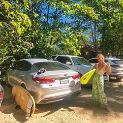 Nous roulons au GPL, comme la majorité des véhicules ici. L’avantage, c’est le prix : environ 22 € le plein ! Nous embarquons aussi nos planches de surf : nous avons repéré quelques plages adaptées. Mais avant ça, direction l’est, sur les hauteurs de Cabarete, pour visiter des plantations de cacao.