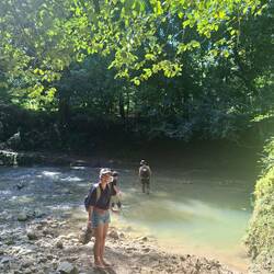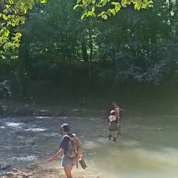 Le lendemain, nous partons pour la cascade El Limón. On prend le bus : ce sont des mini-bus qui sillonnent les routes, les guaguas. On monte dans la montagne et le bus nous dépose au début du sentier. On marche dans la forêt, on traverse des rivières, et avec Agatha on choisit l’option pieds nus !