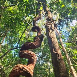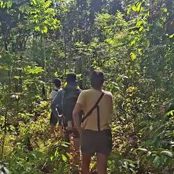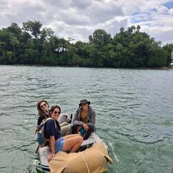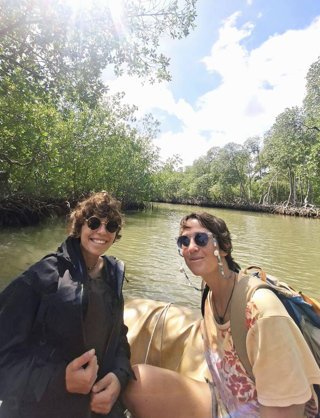 Nous avons même eu la chance de croiser un serpent, blotti à l’abri d’un arbre. L’eau n’est malheureusement pas transparente, mais nous nous baignons quand même. Le temps est calme ; on se plaît à dessiner, jouer, lire et discuter. La nuit, lorsque le ciel s’assombrit derrière le bateau, l’eau devient phosphorescente grâce au plancton. C’est magique, je n’en avais jamais vu autant. On se croirait dans Avatar.
