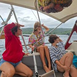 La soirée file tranquillement au rythme du roulis. Je suis très heureuse d’avoir mes copines à bord 🫶