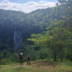 Nous atteignons une superbe cascade d’où dégringolent de grands rideaux d’eau, c’est magnifique. Nous avions peur qu’il y ait beaucoup de touristes, mais finalement nous sommes presque seuls. On rentre par un autre chemin, tout aussi joli.
