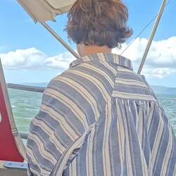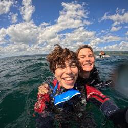 Avec Agatha, nous prenons notre temps. Je lui explique le détendeur étape par étape, puis, le long de la chaîne de l’annexe, nous nous enfonçons : 1 m, 2 m, 3 m… pause, ses oreilles coincent ; on attend, on respire, ça passe. Nous poursuivons la descente jusqu’à 9 m. Tranquillement, nous observons les gorgones violettes qui dansent au rythme de la houle, deux calamars qui glissent sous notre nez, un poisson-trompette parfaitement camouflé dans les éponges. Nous remontons ; C’était un très joli moment ✨️ Anne-So et Malo nous retrouvent, eux aussi ravis de leur immersion malgré une visibilité un peu faible. Ça faisait trop longtemps que l'on avait pas profité des fonds !