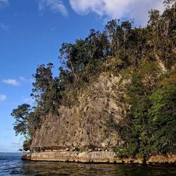 Nous changeons ensuite de cap vers le fond de cette immense baie où se niche le parc. Peu à peu, le paysage devient spectaculaire. D’étonnantes formations calcaires recouvertes d’une végétation luxuriante semblent flotter sur l’eau. Ces pains de sucre, façonnés par l’érosion, émergent au milieu d’une forêt tropicale humide et de vastes mangroves. Le parc est l’un des trésors naturels de la République dominicaine : il abrite une biodiversité remarquable, des colonies d’oiseaux marins, et des grottes ornées de pétroglyphes laissés par les Taïnos.