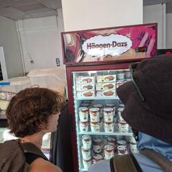 En redescendant, nous proposons une bière à partager avec eux.