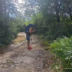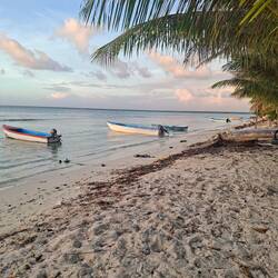 Après cette petite sieste, on part en kayak explorer le Rio Hondo, la rivière située de l’autre côté de la plage. Entourés de palétuviers et de mangrove, on rame sur une eau paisible. Malheureusement, on est assez vite contraints de rebrousser chemin : les arbres ont envahi le lit de la rivière et nous empêchent d’aller plus loin. Mais c’est quand même très beau. On profite d’un bain dans l’eau douce, c’est royal. On se fait un peu peur en parlant de crocodiles… Depuis les San Blas, on est un peu parano avec les attaques de crocos !