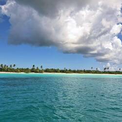 En deux heures à peine, nous apercevons l’entrée de la baie de Bayahibe. C’est amusant : nous découvrons l’autre face des bateaux de touristes que nous croisions tous les jours à Samaná. C’est d’ici qu’ils partent chaque matin et qu’ils reviennent chaque soir après leurs excursions vers Saona ou Catalina.