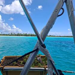 Nous passons ensuite la journée à faire le plein d’eau douce : les cuves sont totalement vides. Cette fois-ci, nous n’avons pas le luxe d’être à la marina. Nous faisons donc des allers-retours avec nos bidons de 20 litres, que nous remplissons grâce à un petit robinet fixé à un palmier près de la zone d’entretien des bateaux à moteur. Le mouillage est assez roulant — surtout quand les bateaux d’excursion rentrent en fin de journée — mais nous finissons par y arriver.