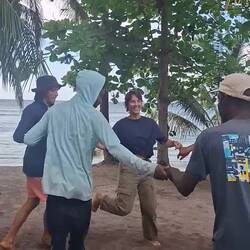 Le soir, nous retrouvons Malo et partons en ville boire un verre pour notre dernière soirée ensemble. Nous enfilons nos belles chemises à fleurs et passons une soirée très joyeuse : beaucoup de discussions, mais surtout de la danse sur de la bachata. Dans un petit bar animé, locaux et touristes se déhanchent dans une ambiance chaleureuse. On se souviendra longtemps de la musique dominicaine, souvent un peu trop forte à notre goût… mais il faut bien l’avouer : elle réchauffe les cœurs et donne irrésistiblement envie de danser.