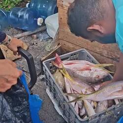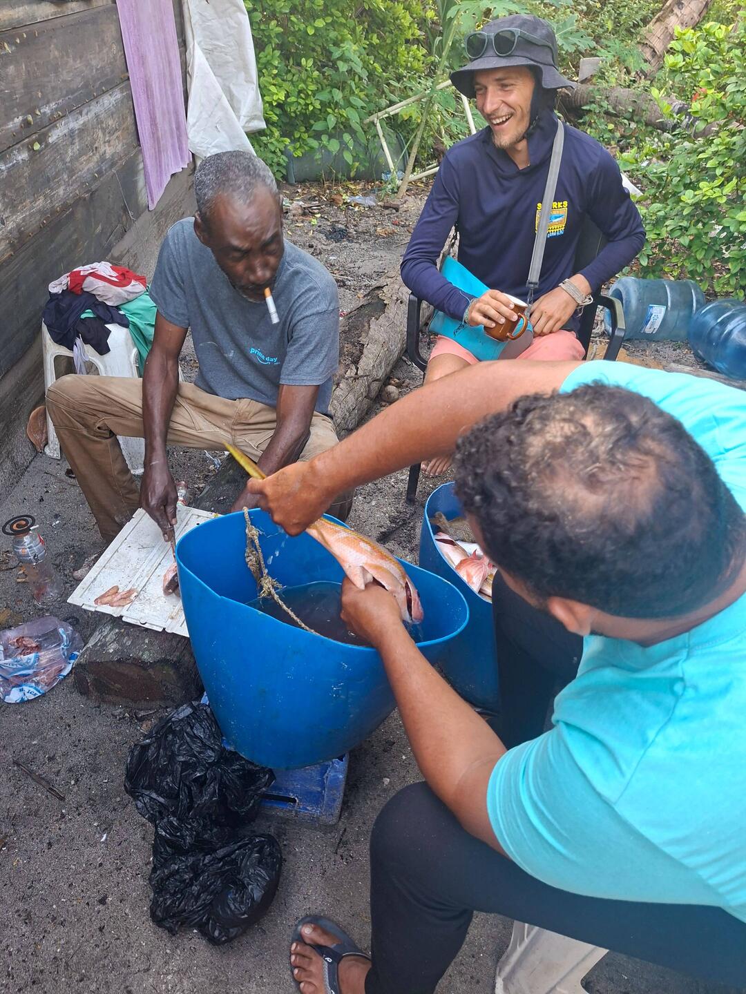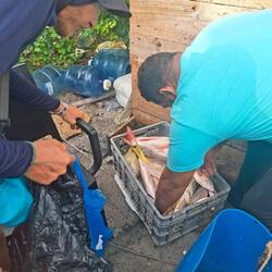 De retour sur Noam, on prend deux paquets de poisson pour aller les offrir à la maison située sur la rive : on en a largement assez pour nous deux. C’est le jardinier de la maison qui les récupère et nous remercie avec un sourire timide.