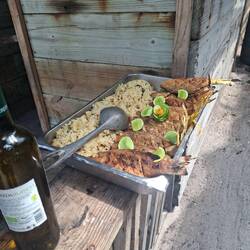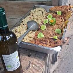 On profite d’un superbe coucher de soleil avant de déguster nos sushis de poisson frais. Un vrai régal.