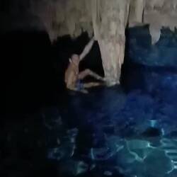 Lorsque nous descendons dans la grotte, deux jeunes couples sont déjà là, tranquillement installés. Dans l’obscurité, nous nous équipons : appareils photos, petit bloc, détendeur… et c’est parti.