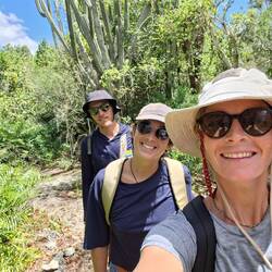 Nous arrivons à un point de vue dominé par une grande statue du Christ. Noémie avait emporté des médicaments et des stylos pour en faire don. Nous rencontrons une vieille dame qui mendie ; elle est profondément reconnaissante en recevant les médicaments. Les pharmacies que nous avons croisées étaient totalement vides. Je ferai le tri des médicaments restants sur le bateau pour les distribuer plus tard à Santiago de Cuba, durement touchée par la tempête Melissa.