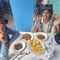 Nous trouvons un petit restaurant pour déjeuner, un peu caché dans un immeuble. Deux musiciens, y jouent, aussi gentils que talentueux. Nous passons des heures avec eux, à discuter, pendant qu’ils nous jouent des morceaux à la guitare et aux maracas.