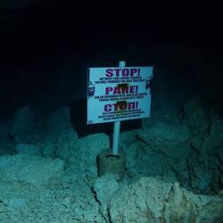 « STOP – Sans formation spécifique en plongée souterraine, si vous dépassez ce point vous allez probablement mourir. »
