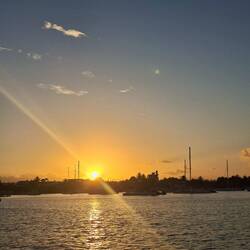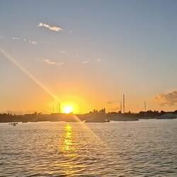 Nous arrivons à la marina sous le soleil couchant. Nous récupérons notre linge propre, lavé pour 3 500 pesos (un bon gros sac !), et rentrons tranquillement à bord.