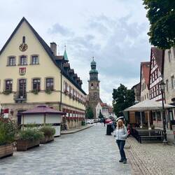 Letzter Stop - Lauf an der Pegnitz - Stellplatz sehr spartanisch, ein Parkplatz, schreckliche Toiletten … aber in 5 Minuten an der Burg und am Marktplatz 👍