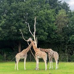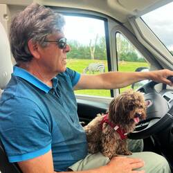 Nachdem wir die Nacht auf dem Parkplatz verbracht haben, sind wir mit den Ersten im Zoo … Hund darf mit und WoMo darf mit 👍