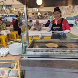 Nous avons retrouvé Sylvia et Francis, sous la pluie à Sokcho. Cela ne nous a pas empêchés de visiter la ville et de manger des calamars farcis, délicieux.