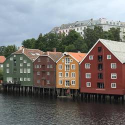 Wir sind gestern, Samstag am Nachmittag in Trondheim angekommen. Es ist zwar kein Sonnenschein, aber auch kein Regen. Nach den letzten wunderschönen Campingplätzen liegen die möglichen Plätze mindestens 10 km außerhalb. Das bringt ja nichts. Also haben wir recherchiert und gelesen, dass Womos neben dem Sportplatz kostenfrei stehen können. Nicht romantisch, aber praktisch.